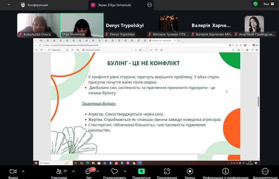 ☘️ Під час зустрічі обговорили, що таке булінг і мобінг, як їх розпізнати, які можуть бути наслідки для психологічного стану людини та як кожен із нас може сприяти створенню безпечного, поважного й дружнього середовища в університеті.