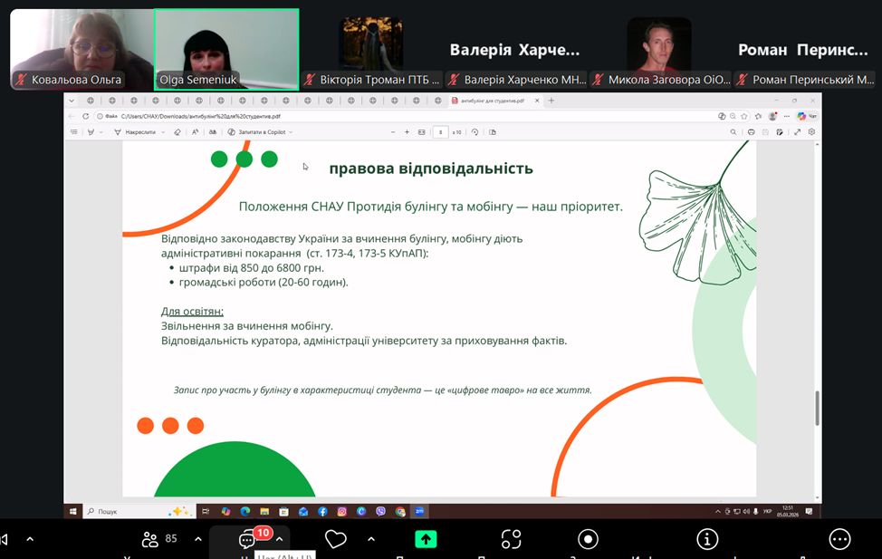 ☘️ 05.03.2026 р. на факультеті економіки і менеджменту Сумського НАУ відбулася загальнофакультетська кураторська година, присвячена важливій темі протидії булінгу та мобінгу в студентському середовищі.