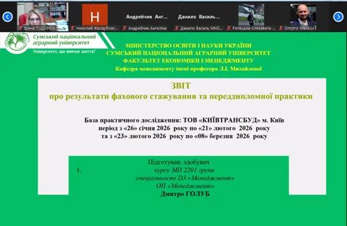 На кафедрі менеджменту імені професора Л.І. Михайлової відбулася важлива подія для майбутніх управлінців – публічний захист звітів з виробничої та переддипломної практики здобувачів вищої освіти 4 курсу освітньої програми «Менеджмент».