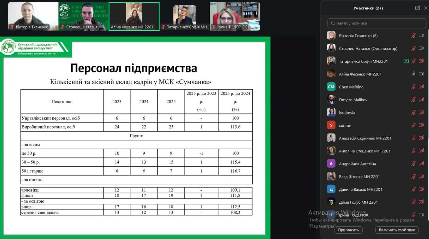 Здобувачі освіти презентували результати фінансово-економічного аналізу баз практики, продемонструвавши вміння працювати з реальними показниками. Особлива увага приділялася пропозиціям щодо вдосконалення стратегій розвитку підприємств та цифровізації бізнес-процесів.