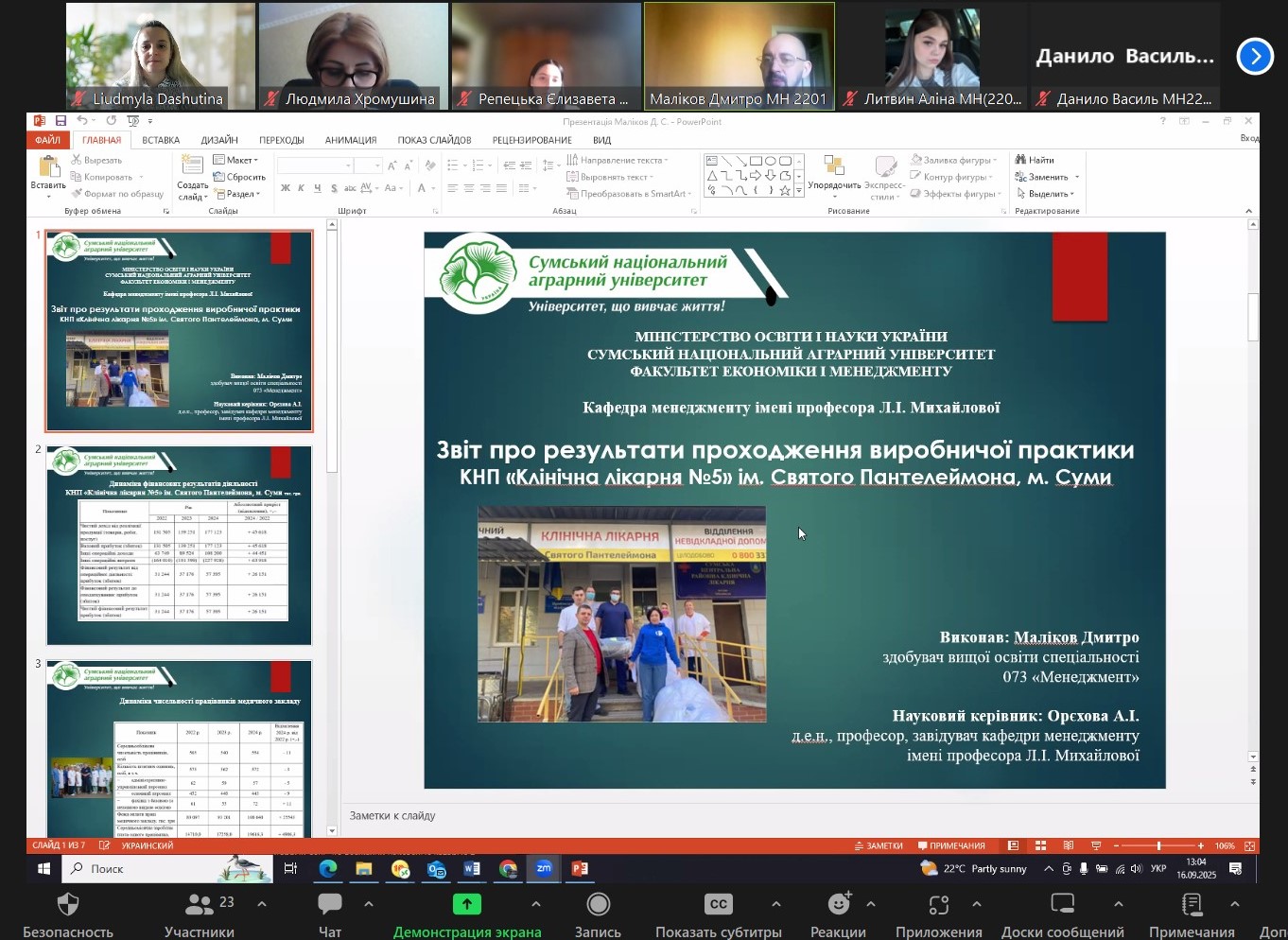 During the defence, the students presented the results of their practical activities, the skills they had acquired and the analytical work they had done at enterprises, organisations and institutions in various sectors of the economy. The students’ presentations demonstrated their ability to apply theoretical knowledge of management in real production conditions.