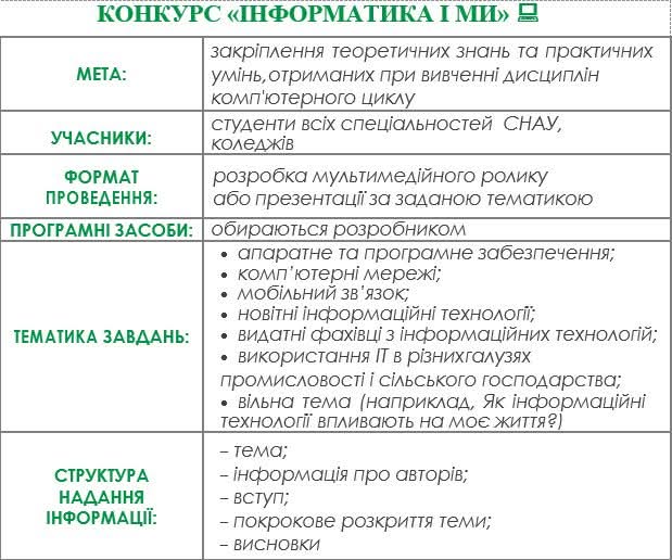 Кафедра кібернетики та інформатики оголошує конкурс “Інформатика і Ми”
