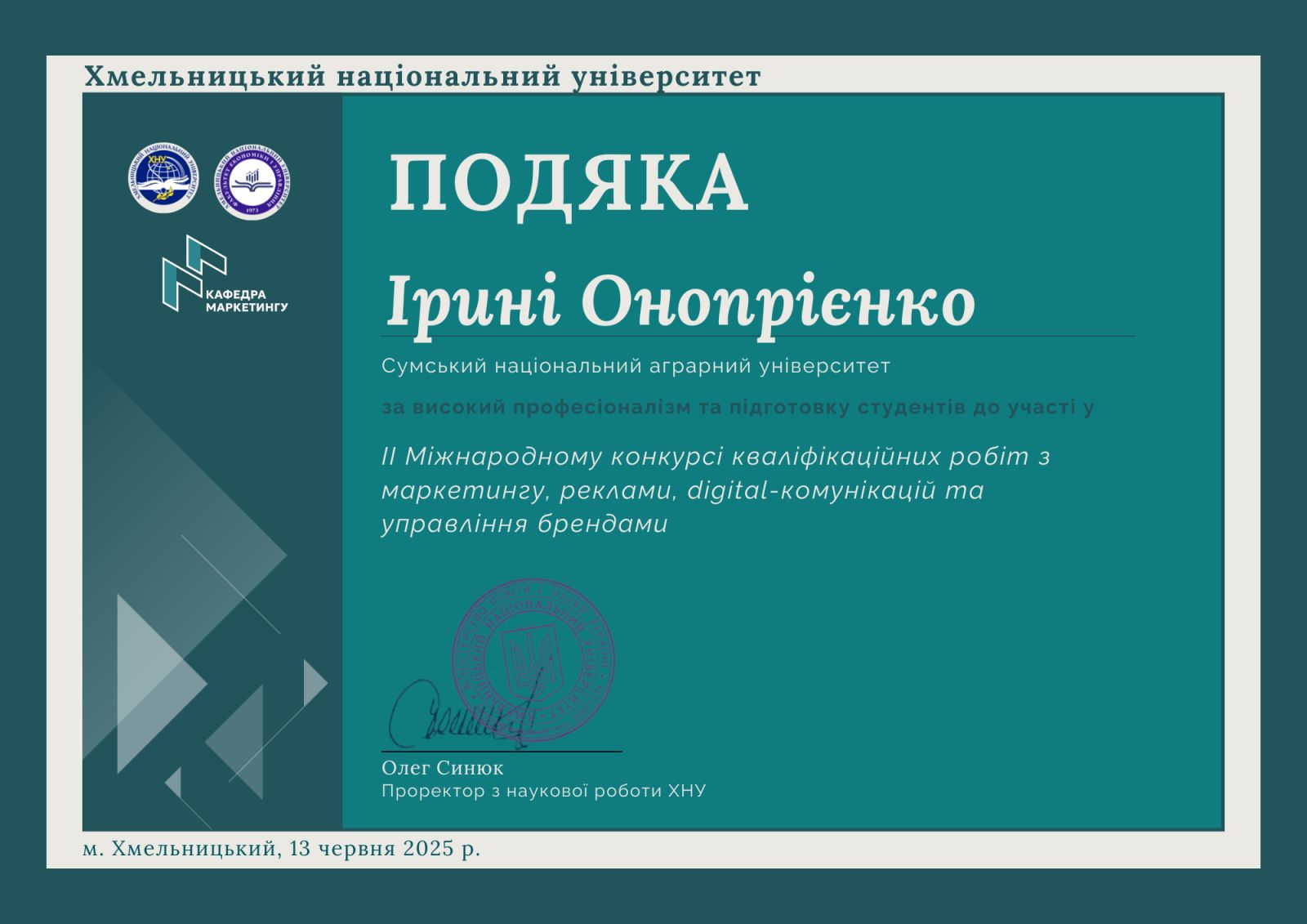 Пишаємося нашими талановитими студентами та їхніми науковими керівниками! Це ще одне підтвердження високого рівня підготовки й актуальності досліджень наших майбутніх маркетологів. Бажаємо подальших звершень, натхнення та нових професійних перемог!