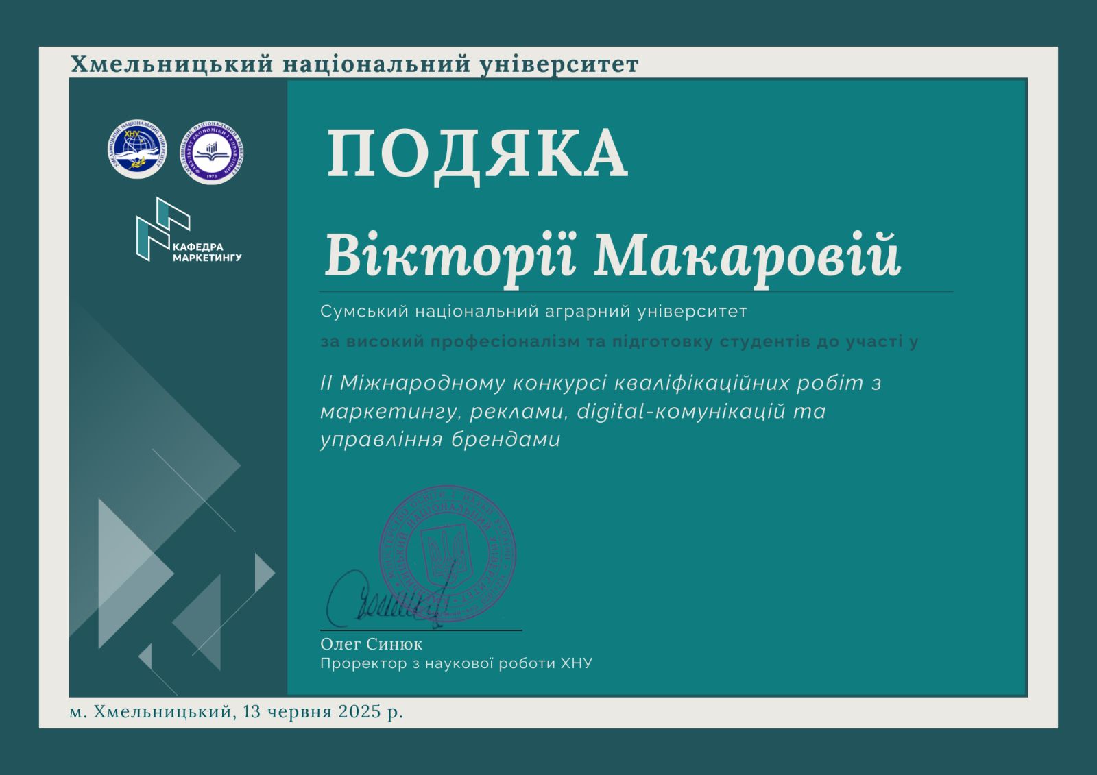 В Хмельницькому національному університеті відбувся II Міжнародний конкурс кваліфікаційних робіт з маркетингу, реклами, digital-комунікацій та управління брендами за першим (бакалаврським) та другим (магістерським) рівнями вищої освіти.