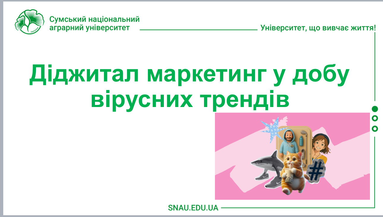 24 жовтня 2025 на Кафедра маркетингу та логістики СНАУ було проведено гостьову лекцію для студентів коледжів на тему «Діджитал-маркетинг у добу вірусних трендів», яку підготувала та провела кандидат економічних наук, доцент Мусієнко Вікторія Ігорівна.