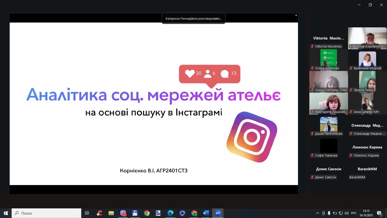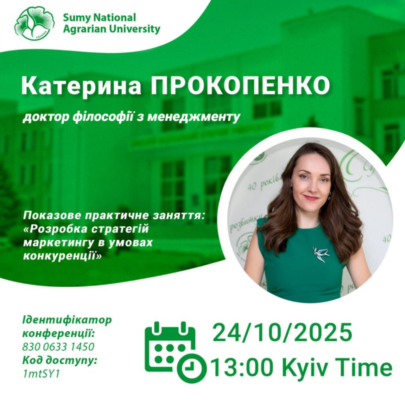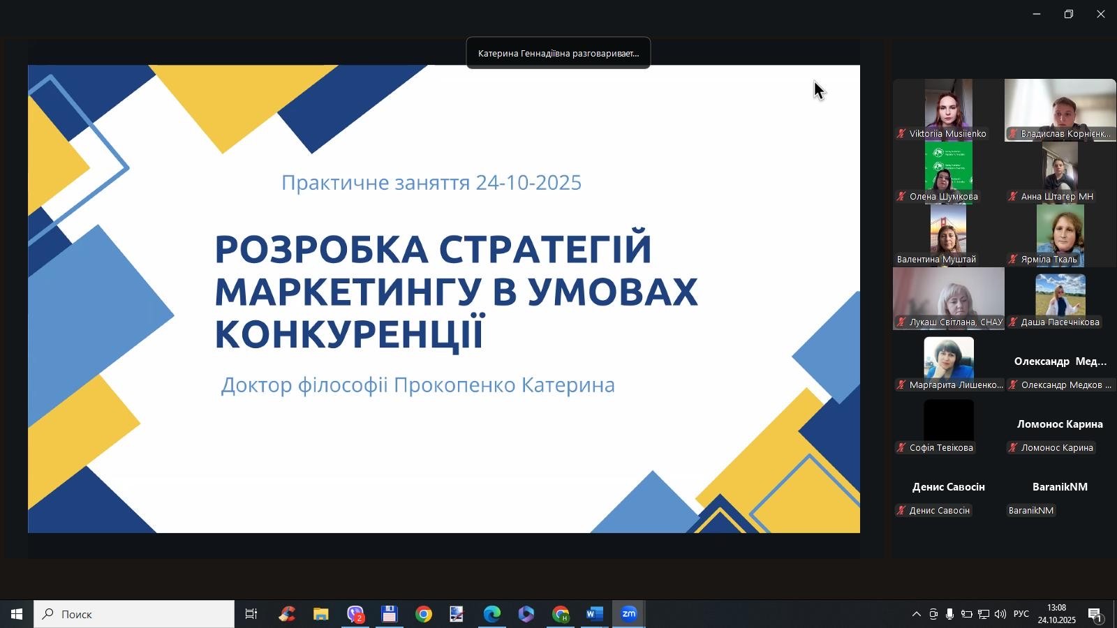 24 жовтня на Кафедра маркетингу та логістики СНАУ відбулось показове практичне заняття доктора філософії Катерини Прокопенко на тему «Розробка стратегій маркетингу в умовах конкуренції» в межах викладання освітнього компоненту «Маркетинг малих бізнесових структур». Під час заняття розглядалися сучасні підходи до формування маркетингових стратегій, аналізувалися приклади успішних бізнес-кейсів, а також обговорювалися реальні виклики, з якими стикаються малі підприємства на конкурентному ринку. Особливу увагу було приділено сучасним підходам до побудови маркетингових стратегій, інструментам аналізу конкурентоспроможності та розробці інноваційних рішень для просування бізнесу.