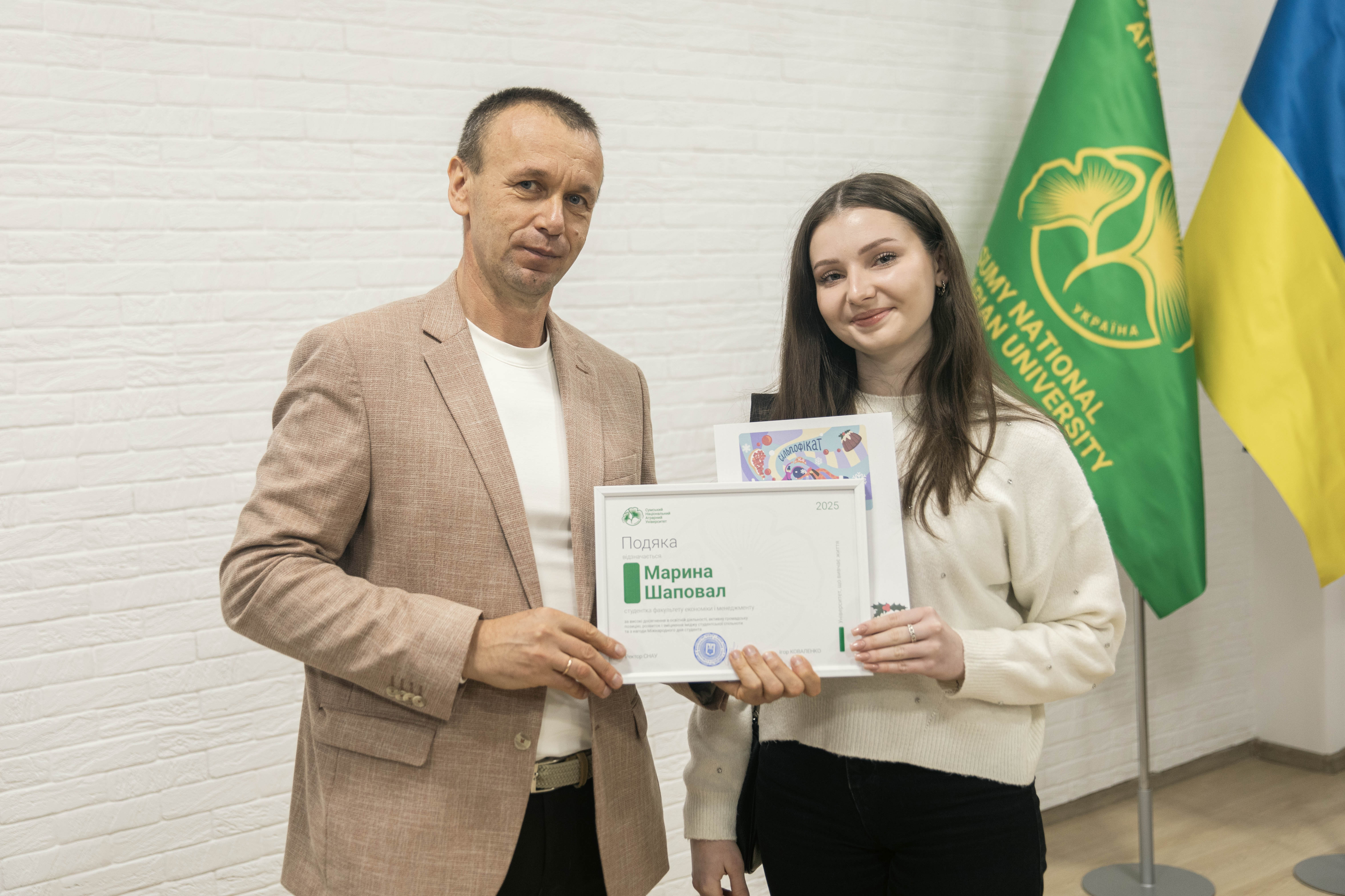 20 листопада у Сумському національному аграрному університеті відбулося урочисте відкриття оновленого студентського простору. Захід присвятили до Міжнародного дня студента та створили як сучасний хаб для всіх здобувачів університету, де можна втілювати свої ідеї та проєкти. Уже в оновленому просторі відбулося урочисте нагородження найактивніших студентів СНАУ. За високі досягнення в освітній діяльності, активну громадську позицію, розвиток і зміцнення іміджу студентської спільноти та з нагоди міжнародного дня студента була відзначена студентка 3 курсу спеціальности “Маркетинг” Шаповал Марина. Колектив кафедри щиро вітає Марину та бажаємо подальших успіхів в навчальній та науковій діяльності!