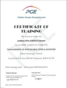 Так, професор кафедри менеджменту імені професора Л.і. Михайлової д.е.н. Сохань Інна Віталіївна протягом червня-серпня 2023 року проходила міжнародне стажування в холдингу галузі альтернативної енергетики, що обʼєднує підприємства Польщі, Чорногорії та України. Здобутий досвід стане корисним для вітчизняних стейкхолдерів при оцінці ефективності власних бізнес-процесів та впровадженні джерел альтернативної енергетики для досягнення цілей сталого розвитку підприємств та територіальних громад
