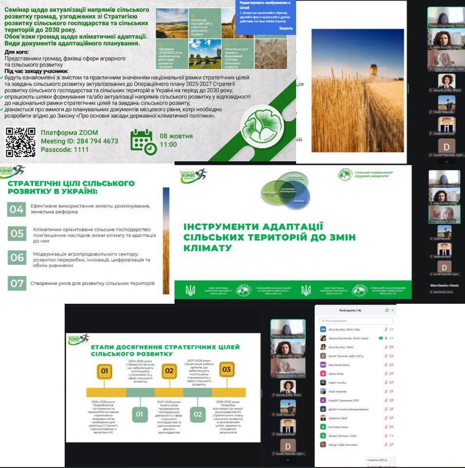 «Актуалізація напрямів сільського розвитку громад, узгоджених зі Стратегією розвитку сільського господарства та сільських територій до 2030 року. Обов’язки громад щодо кліматичної адаптації. Види документів адаптаційного планування».