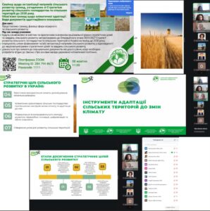У ході семінару обговорювалися шляхи формування та оновлення напрямів сільського розвитку громад у відповідності до державної політики та стратегічних документів. Окрема увага була приділена обов’язкам громад щодо кліматичної адаптації та вимогам до планувальних документів місцевого рівня, передбачених Законом України «Про основні засади державної кліматичної політики».