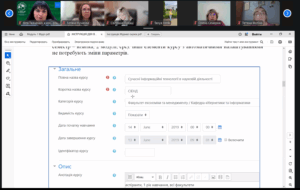 Перший модуль курсу проводить доцент кафедри кібернетики та інформатики Агаджанова Світлана Володимирівна. Навчання зосереджене на актуальних питаннях розробки та впровадження онлайн-курсів із використанням платформи LMS Moodle.