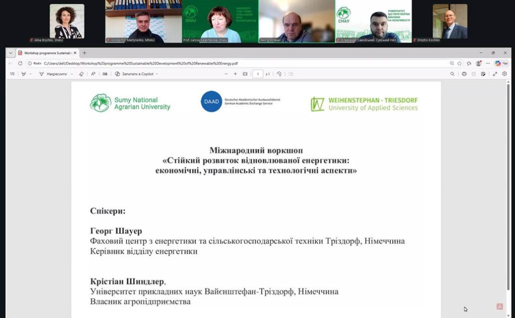 Today marked the launch of the international workshop “Sustainable Development of Renewable Energy: Economic, Managerial, and Technological Aspects,” bringing together experts, academics, practitioners, and students to address current challenges in the energy market. The event is organized by the Department of Public Management and Administration of SNAU in partnership with Weihenstephan–Triesdorf University of Applied Sciences (Germany), with the support of the German Academic Exchange Service (DAAD).