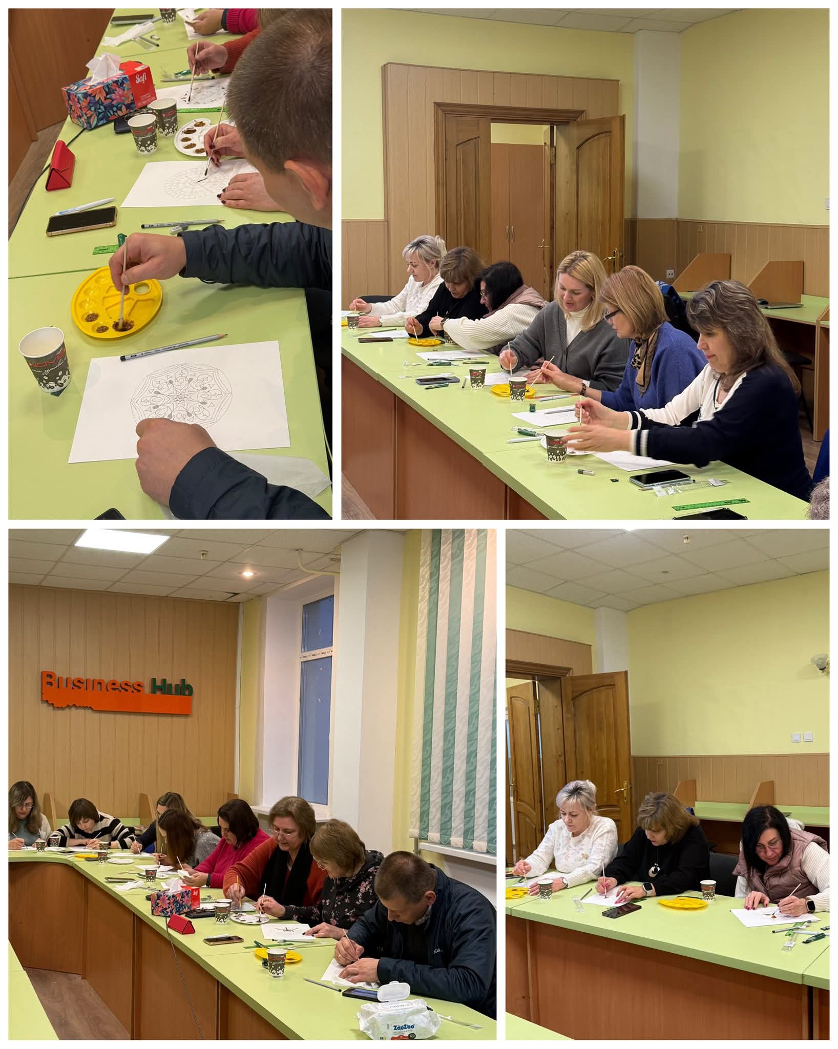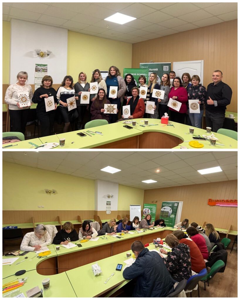 На факультеті економіки і менеджменту Центр життєстійкості м. Суми, фахівець з соціальної роботи Лишенко Віталій Валерійович провів каво-терапію ☕️🎨 — вчилися малювати кавою мандали 🤎