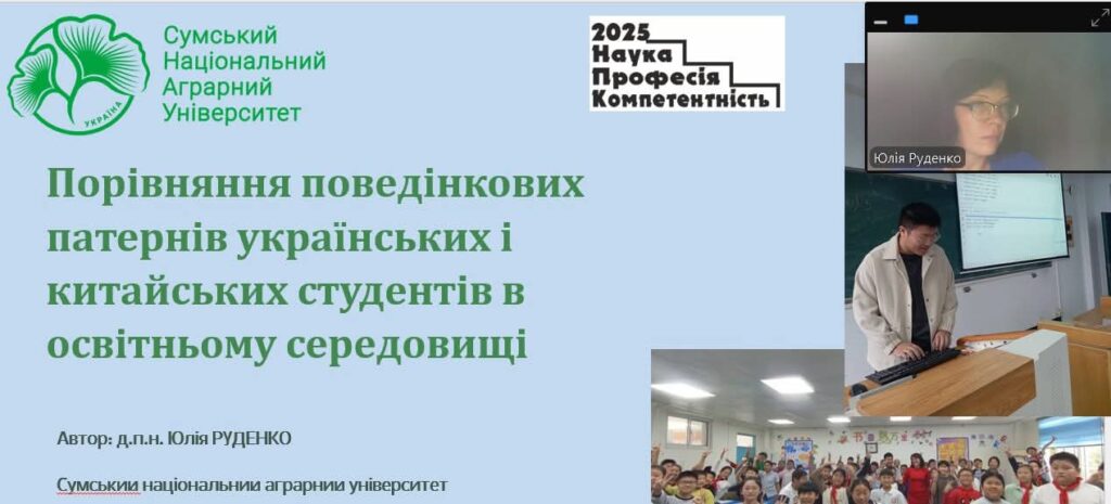 До участі в міжнародній науково-практичній конференції «Наукова діяльність як шлях формування професійних компетентностей майбутнього фахівця – 2025», що відбулася на базі Сумського державного педагогічного університету, була запрошена докторка педагогічних наук, доцентка кафедри кібернетики та інформатики Сумського національного аграрного університету Юлія РУДЕНКО. Вона представила доповідь на тему «Порівняння поведінкових патернів українських та китайських студентів в освітньому середовищі».