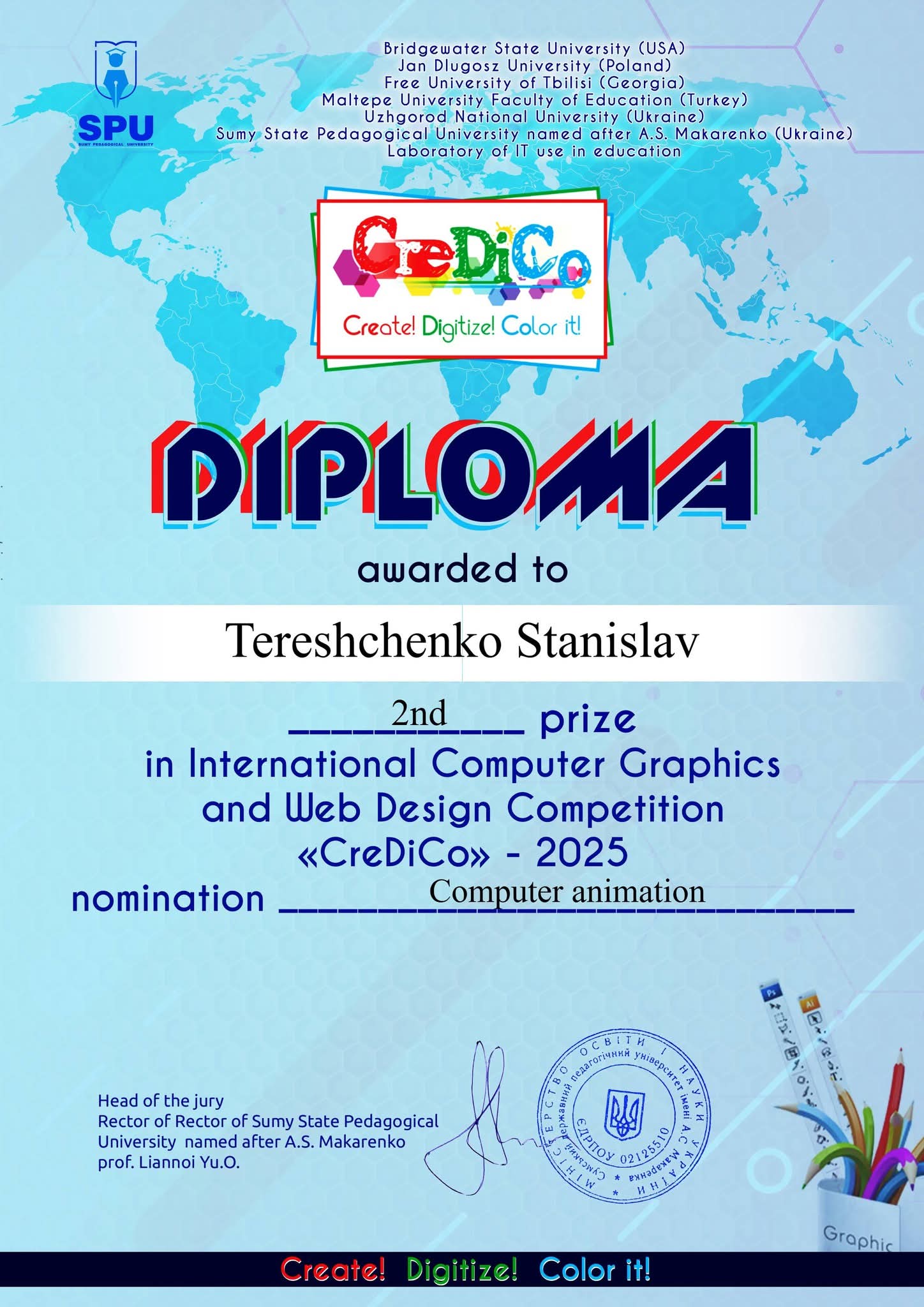 У номінації «Вебдизайн» Сергій ПІВОВАР зайняв перше місце, а Станіслав ТЕРЕЩЕНКО отримав друге місце у номінації «Комп’ютерна анімація».