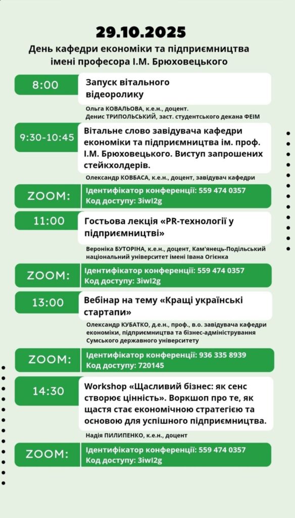 29.10.2025 знайомимося з кафедрою економіки та підприємництва імені професора І.М.Брюховецького та кафедрою фінансів,банківської справи та страхування 💼
