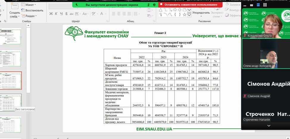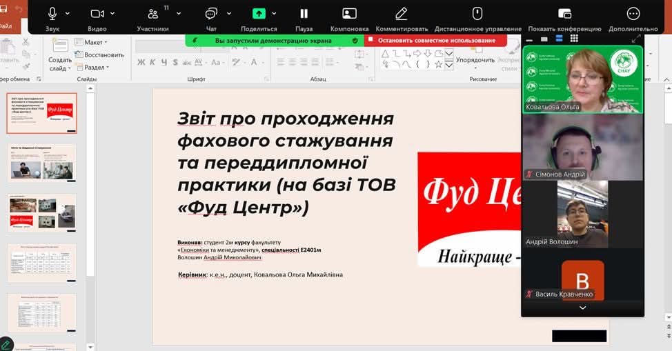 23-24 вересня 2025 року студенти другого (магістерського) рівня вищої освіти спеціальності 051 «Економіка» та спеціальності 076 «Підприємництво та торгівля» факультету економіки і менеджменту СНАУ успішно представили результати своєї практичної підготовки після проходження фахового стажування та переддипломної практики.